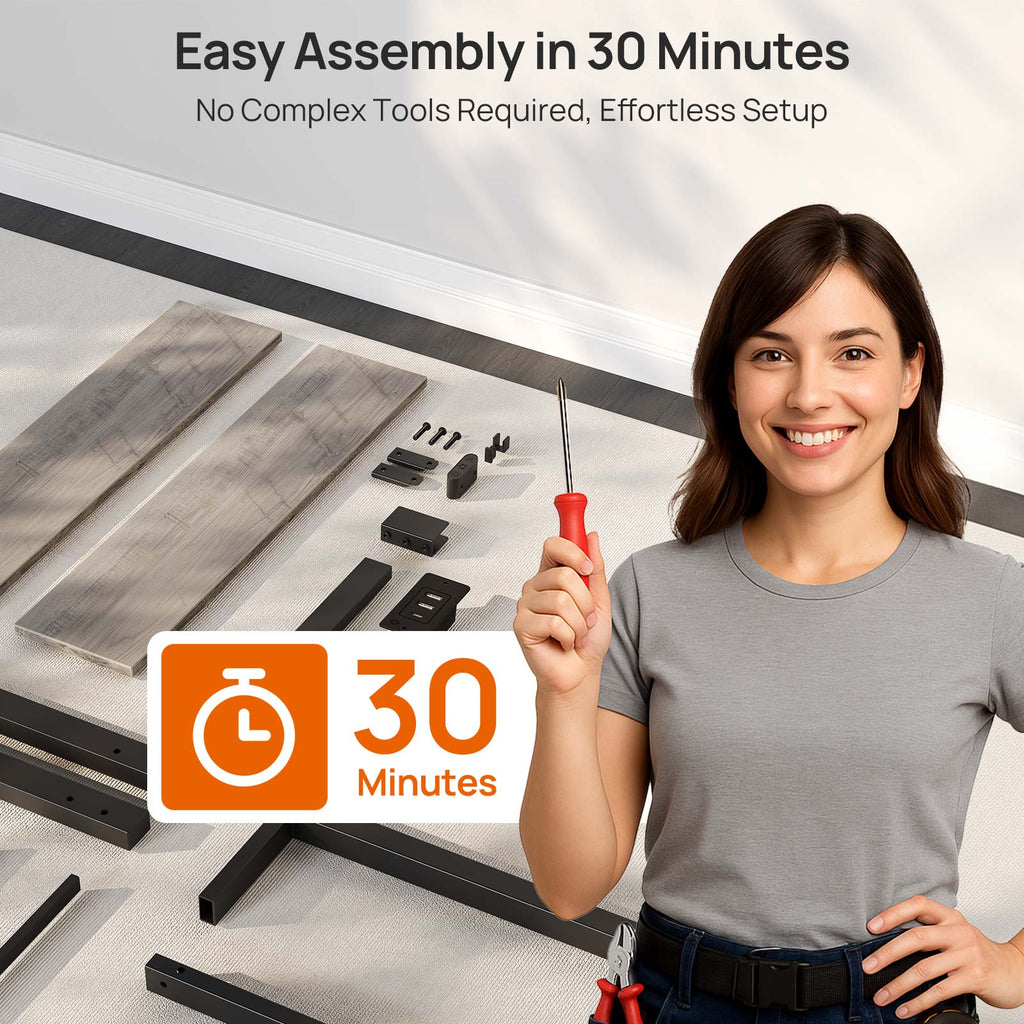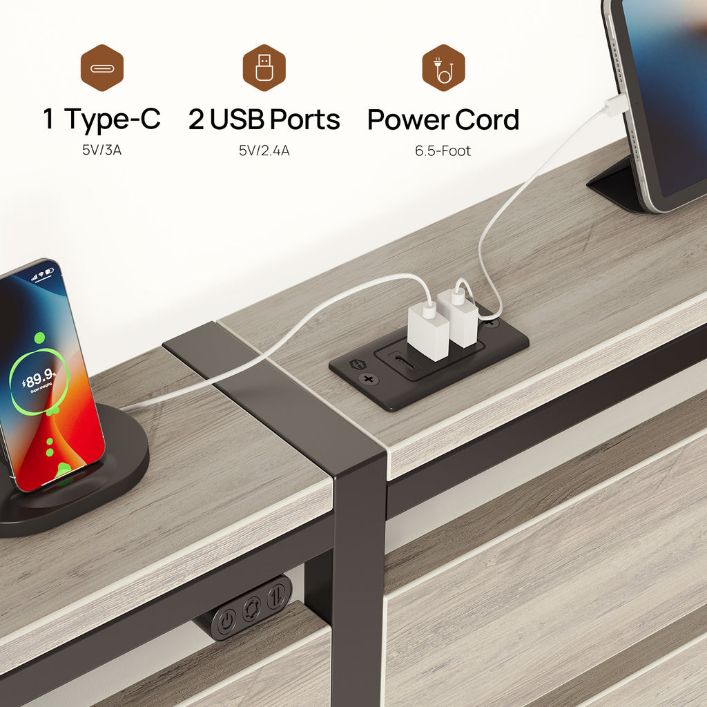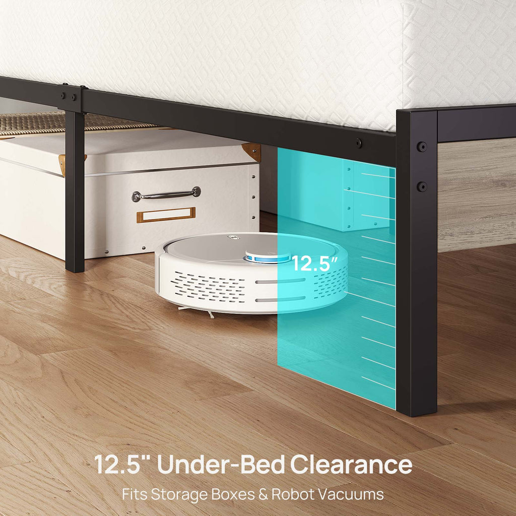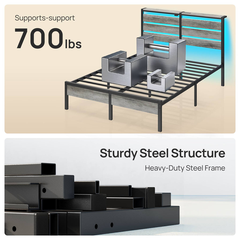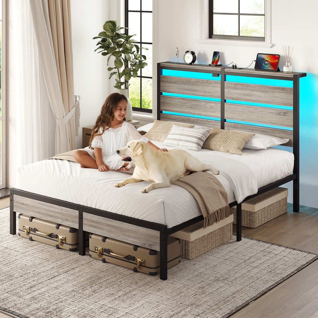 Rolanstar Queen Bed Frame with LED Lights and Charging Station, Wood Storage Headboard and Under Bed Storage, Metal Platform, Noise Free, No Box Spring Needed, Grey